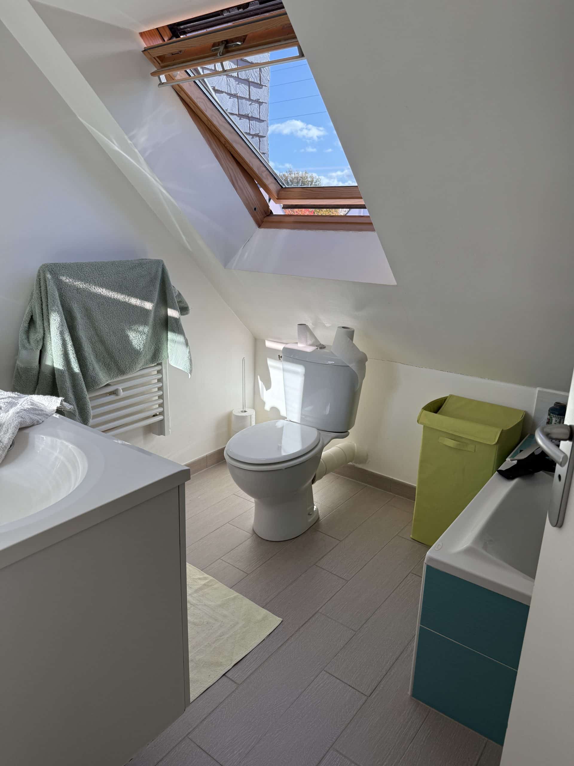 A l'étage, deux chambres et un bureau, une salle de bain et un wc